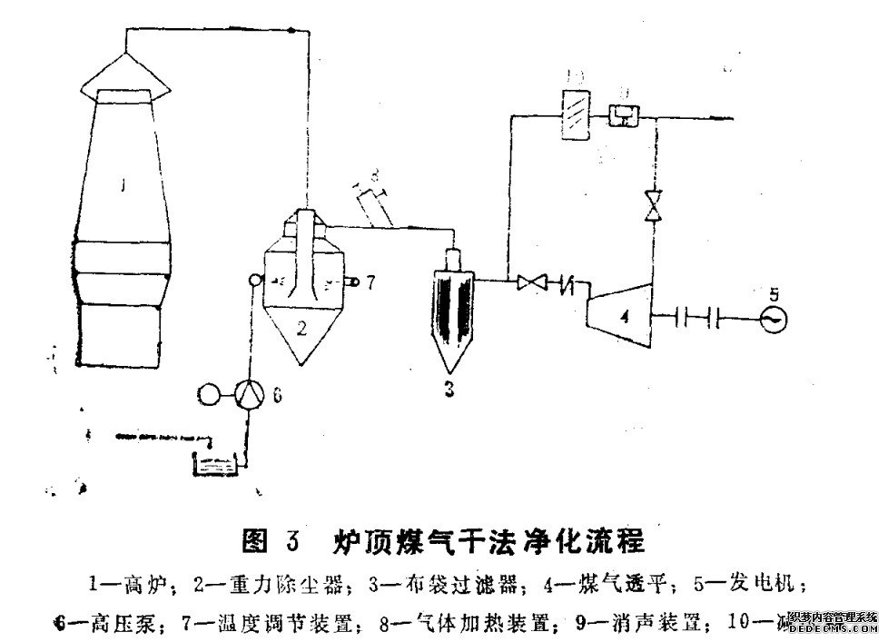 干式煤氣凈化系統(與濕式凈化法比較)具有如下優點: —熱量回收成能源;
