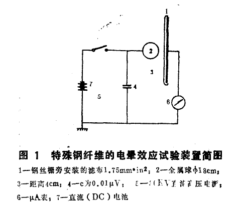 濾料中的特殊鋼纖維不僅向濾袋表面的塵塊放電,還平衡了離濾袋較遠距離的靜電負荷,這點已經在模擬試驗中得到證實(_見圖I, 2 ).試驗濾袋旁邊設置了一個金屬球,為了模擬運行實際狀態,濾料固定在焊接的金屬網上.金屬球體與濾料的距離為4 cm.如果關閉開關S,那么電容就會由0.01uV增為直流高壓,在關閉了的開關S和30KV的電源上.